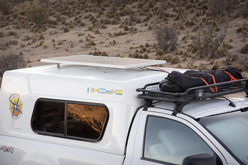 Hello dear followers. I recently completed the last (I think) major update to the truck. I finally added a 180-Watt solar panel and a 20-Amp solar charge controller to the electric system. Until now the electric system relied on a 110-ah deep-cycle battery to power mostly our fridge and lights. That battery gets recharged when we drive, and discharged when we are stopped. That way we had less than a day of full autonomy, then I had to run the engine of the truck for 20 minutes to half an hour to recharge the leisure battery. I would do that usually morning and evening, and even sometimes around mid-day. Now as soon as the sun comes up, the solar system starts putting energy in the leisure battery. Quickly the panel supplies all the power necessary so that the fridge doesn’t draw from the battery at all. The result is that now, at the end of the day, the battery is fully charged and ready to power our system during the evening and at night. The next morning the solar panel will quickly restore the charge into the battery, so that the battery now is kept mostly at full charge most of the time. That will extend its lifespan since it no longer gets so discharged and partially recharged as before.