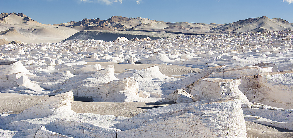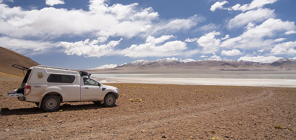 From El Peñon we will continue a few kilometers until the intersection with the track to Campo Piedra Pómez. Here we leave the pavement for a few days. You can drive straight to the pumice field or take a worthwhile detour to the Laguna Carachi Pampa. It’s not every day that you get to drive on black volcanic rock. At the laguna you will find a few flat spots where you can park and overnight. The solitude, views and wildlife viewing are just amazing. We saw many flamingos and llamas. In the morning some of the llamas came very close to our camp. You can safely continue the track you came on to eventually arrive right in the middle of Campo Piedra Pómez. At times the track is barely visible but you can’t get lost. Just follow the GPS track and enjoy the views along the way. Campo Piedra Pómez is another breathtaking spot, a desert of white pumice rock formations. If you take the track to your left back towards the entrance of the park, you will quickly reach a sort of parking area very close to the rock formations. It is quite possible to camp there and well worth it. The rock formations change color as the light changes at sunset, and early in the morning. In any case a walk among the rocks is highly recommended.