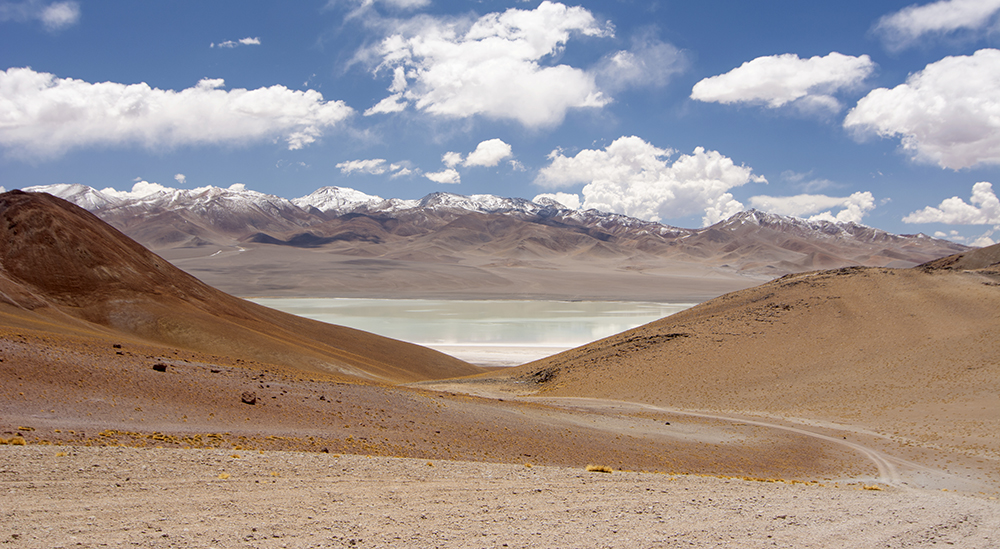 As we push on the track climbs always higher. At about 17 mi. from town and at 14,000 feet you will see a couple of spur tracks to your left. These form a sort of triangle that points to a beautiful area of flat ground large enough for several vehicles, with gorgeous views over a canyon. It is a perfect spot to spend a night in peace and silence, under the stars, with the lights of Antofagasta glittering in the distance below. Be prepared for cold temperature due to the altitude and generally clear sky. The next day you can push on higher to the Vega Real Grande. A vega is a wet flat area, generally with a stream or some kind of running water. The crossing is straightforward but the place is worth a stop, just to stretch the legs, take a photo, and acclimatize to the increasing altitude. Further ahead you will come to a narrow canyon. A mid-size vehicle will fit no problem though with a bit of a challenge since the track has some turns between the rock faces. Larger vehicles will have to do some maneuvering and a spotter will be helpful to keep all the body panels intact. Also remember that you might come back the same way and will have to drive through this canyon a second time. Past this point the only challenge is the increasing altitude, up to 4999 m or 16,400 feet. Once you drive down towards the laguna Diamante you will be rewarded with amazing views of the crater of the volcano Galán. Now, this crater is so big that there isn’t a single spot where you can see it in its entirety. It wasn’t until the first satellite views that scientists realized that this is a crater. You just see an immensity of mountains and a lake. I remind you that altitude sickness is a serious threat. If you feel unwell during the drive do not hesitate to turn around and descend to lower altitude immediately. It will take you a while until you reach an altitude where you feel comfortable again. If you start early enough in the morning, it is quite feasible to drive up to the shore of the laguna Diamante, have a bite to eat, then drive back down to the camp spot mentioned earlier, with ample time to set up camp and watch the sunset. A memorable day indeed. If you intend to connect with the trail from the hamlet of El Peñon you have to head south on a track marked 4×4 only. GaiaGPS shows a track to the north along the lake shore but there isn’t any. I explored on foot looking for it and never found it. In the next post we will leave Antofagasta on a long stretch of remote wilderness: 450 km (about 300 mi.) until the next gas station.
