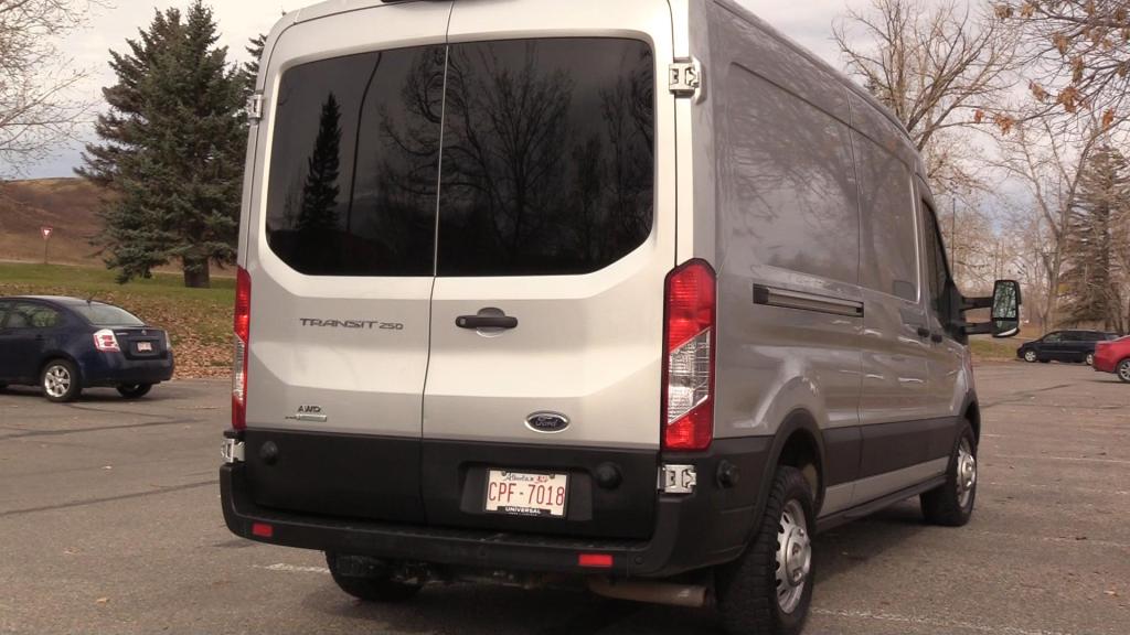 The Ford Transit AWD. We settled on the Transit because we have owned a number of Ford vehicles over the years and have had a good experience with them. The AWD option is important to us, the dealer network is extensive everywhere, and the availability and price of replacement parts is pretty good. We had ordered a 2023 model, with AWD, limited-slip rear differential and the 3.3L V6 Eco-boost engine. After months of waiting and our 2023 order canceled we decided to shop for a used van. We purchased a Transit of the same characteristics as the one we had ordered with a few minor differences. It is a 148″ wheelbase, AWD with the V6 Ecoboost engine. We had a shop in Calgary install the Van Compass 2″ lift kit and a rear tire carrier and ladder combo from Tec Van. At some point we will replace the factory tires with new All-Terrain tires, in a larger size: 245/75R16 mounted on the factory rims. The bigger tires will give us an additional inch of ground clearance, and lift the frame a total of 3″, thanks to the larger tires and lift kit. The spare tire will no longer fit under the chassis with the larger tire, so that is why we have the rear tire and ladder combo.
